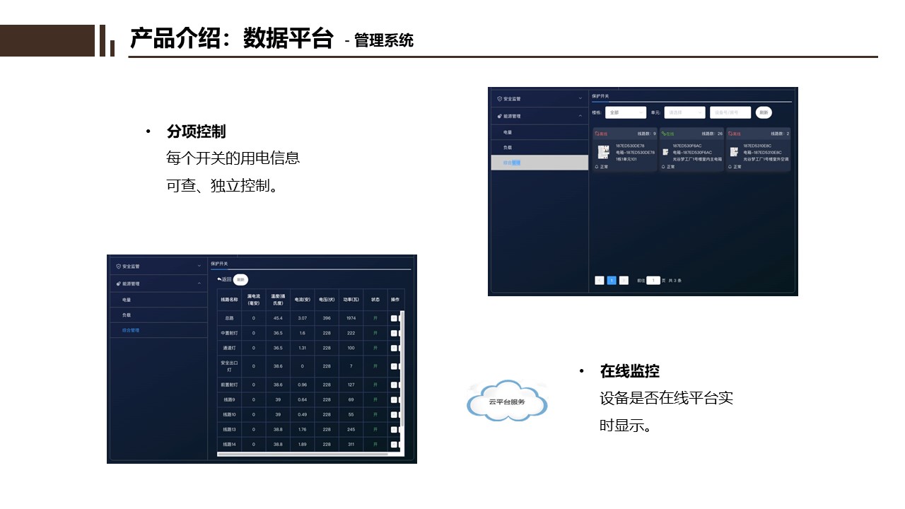 用(yòng)戶可(kě)以通(tōng)過平台實時(shí©ε)查看(kàn)當前數(shù)據、統計(j₹≠₩≥ì)報(bào)表及遠(yuǎn)程控制(zhì)各線路(<♥←£lù)、開(kāi)關。